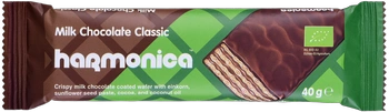 Ekologisk vegansk våffelkex med kakao-kokoskräm, chokladöverdragen, 40 g – Harmonica